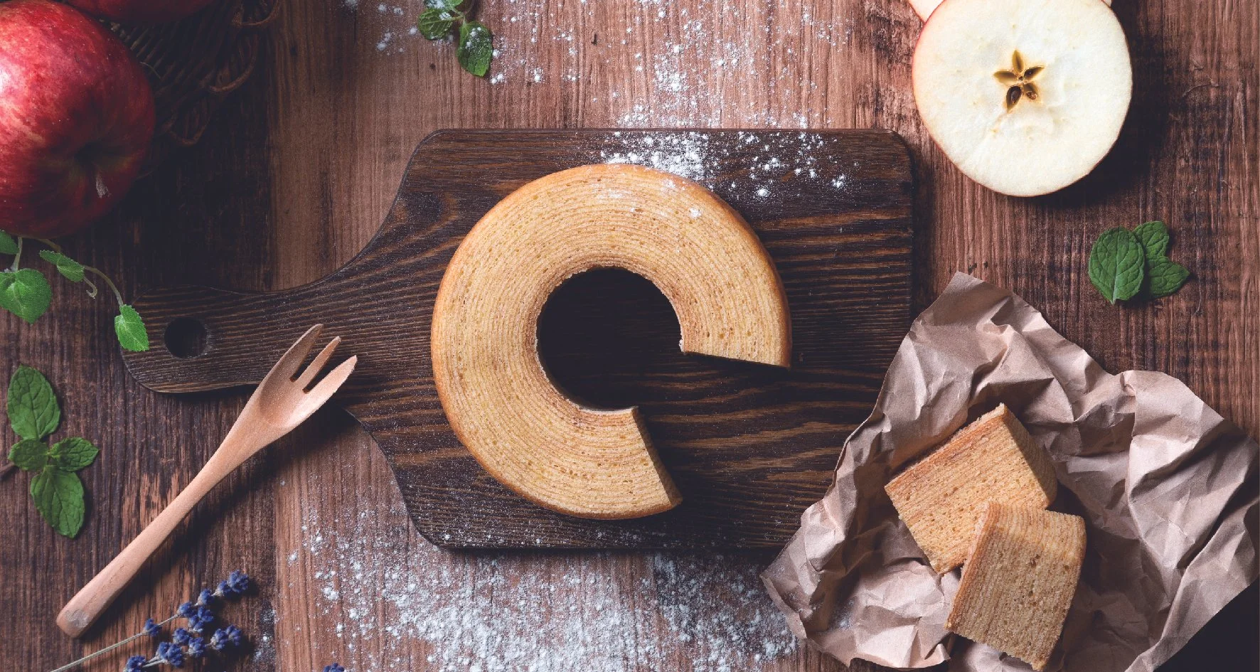 ほのかな酸味とりんご本来のやさしい甘さでボリュームはあるのに飽きのこないパイに仕上げました。